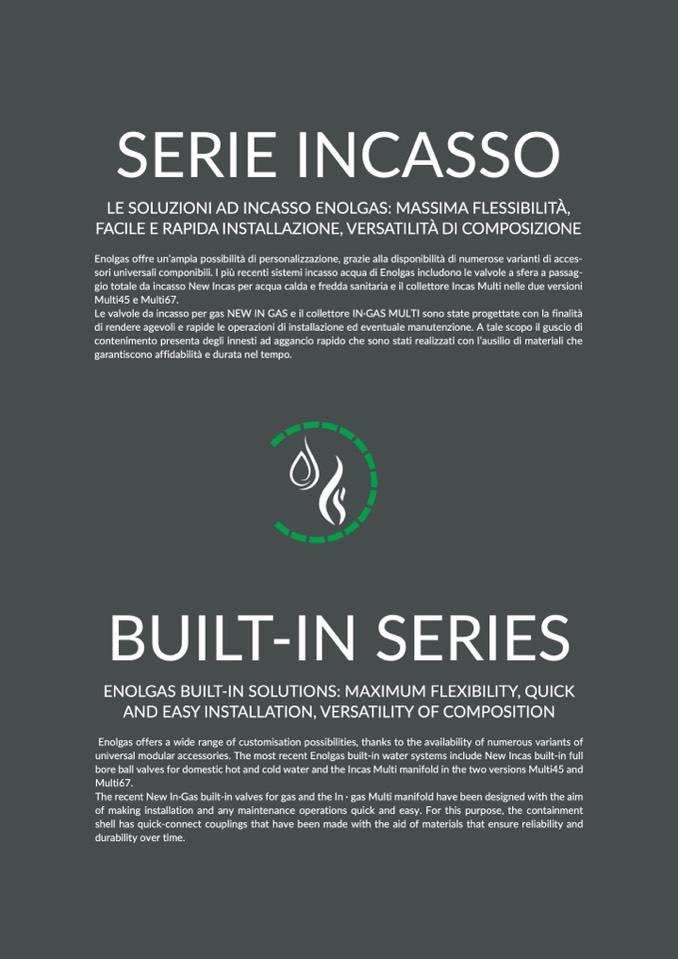sori universali componibili. I più recenti sistemi incasso acqua di Enolgas includono le valvole a sfera a passag-