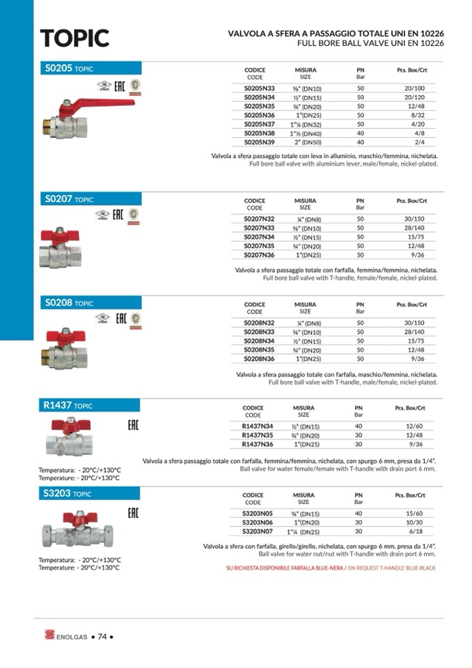 Valvola a sfera passaggio totale con farfalla, maschio/femmina, nichelata.