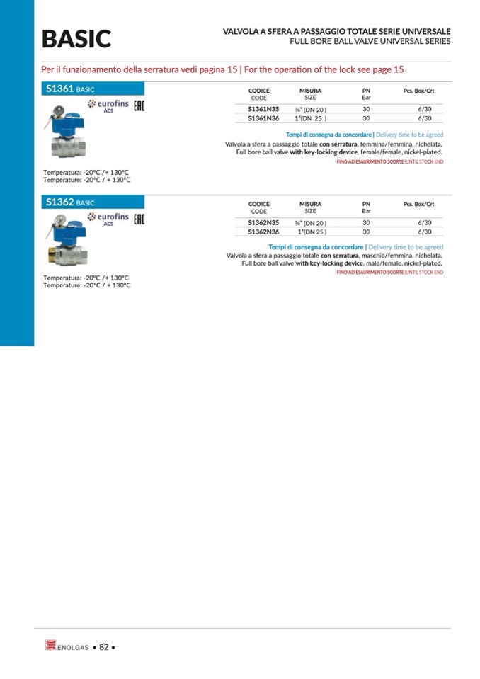 Full bore ball valve with key-locking device, male/female, nickel-plated.