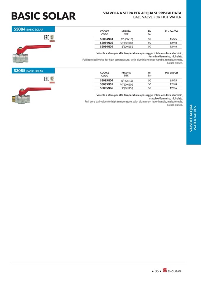 Valvola a sfera per alta temperatura a passaggio totale con leva alluminio,