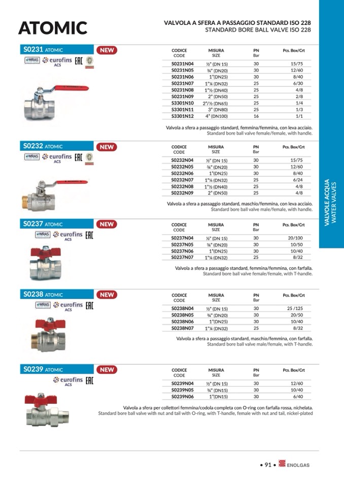 Valvola a sfera a passaggio standard, maschio/femmina, con farfalla.