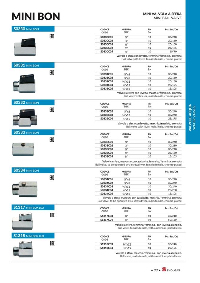 Valvole a sfera con levetta, maschio/femmina, cromata.