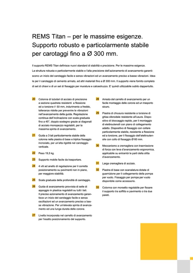 le per il carotaggio di cemento armato, ed altri materiali fino a Ø 300 mm. Il supporto viene fornito completo
