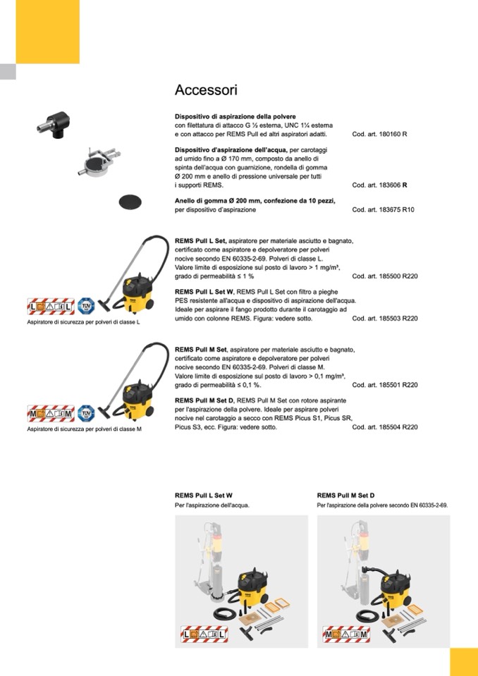nocive nel carotaggio a secco con REMS Picus S1, Picus SR,