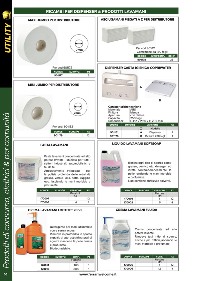 RICAMBI PER DISPENSER & PRODOTTI LAVAMANI
