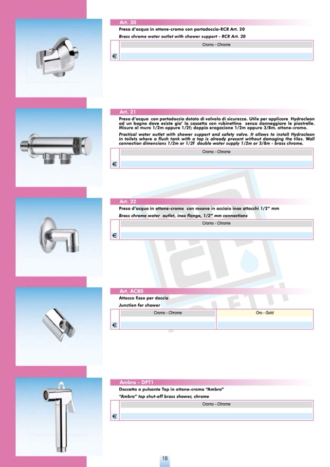 Practical water outlet with shower support and safety valve. It allows to install Hydroclean