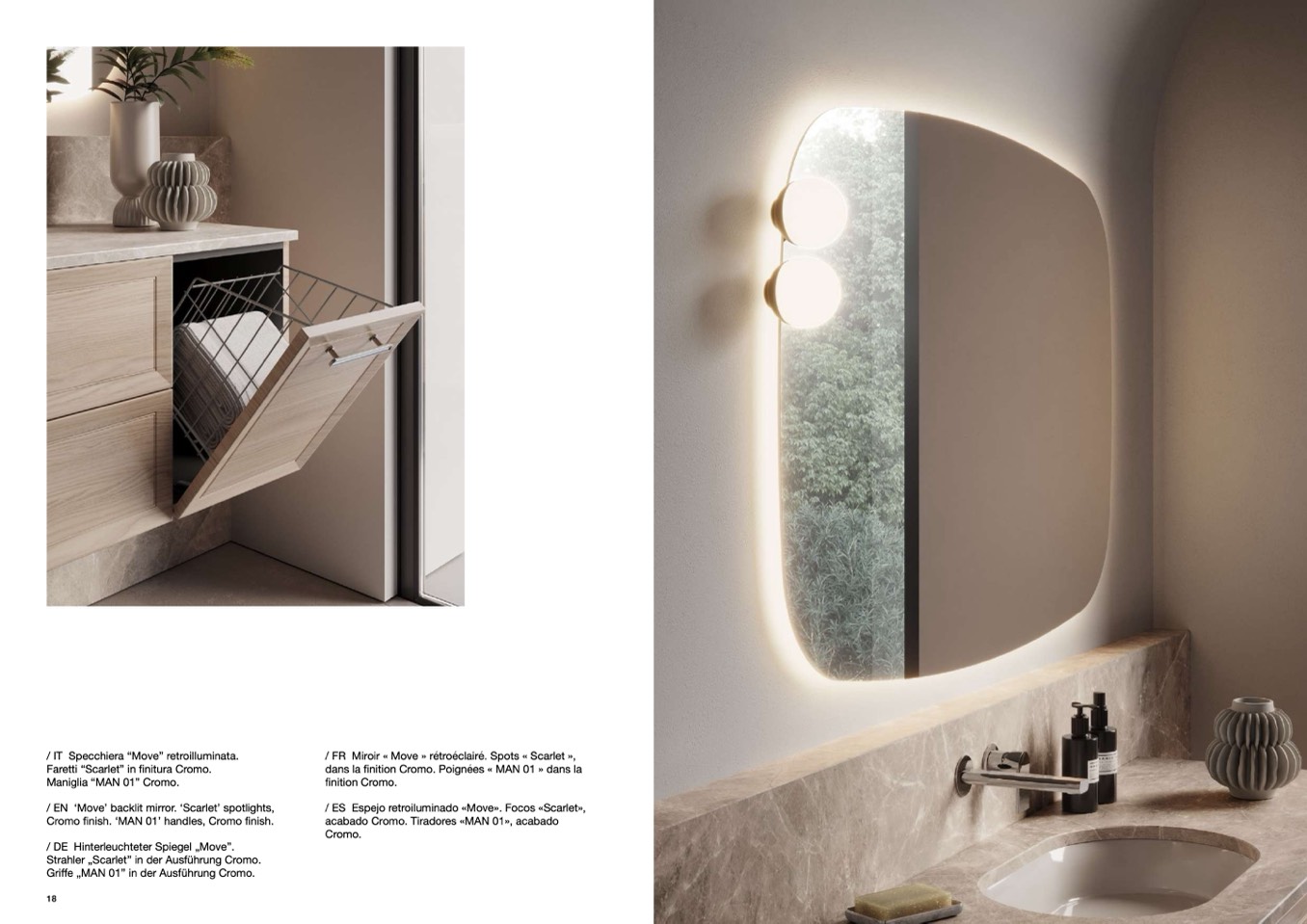 / EN ‘Move’ backlit mirror. ‘Scarlet’ spotlights,