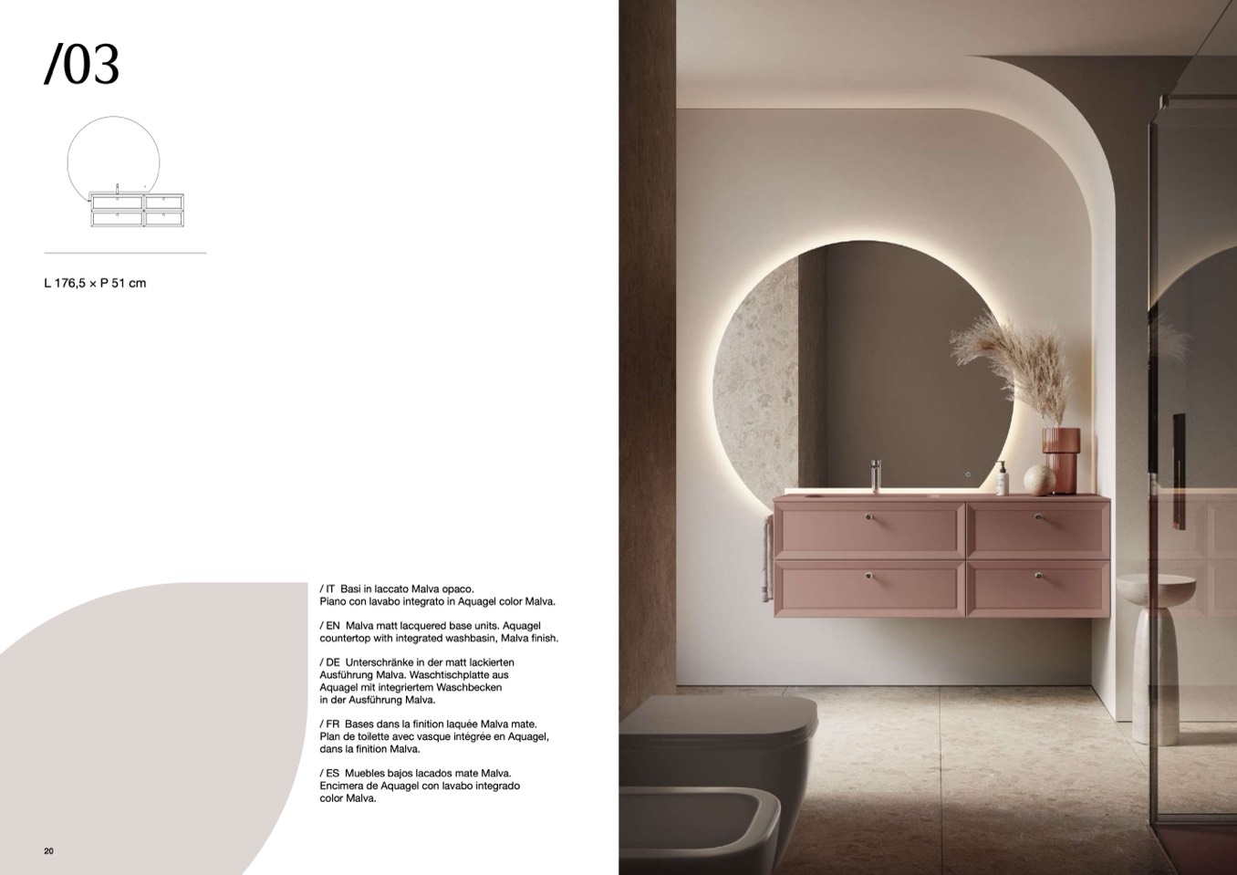 / EN Malva matt lacquered base units. Aquagel