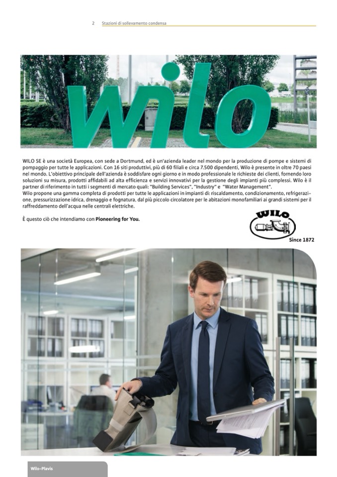 pompaggio per tutte le applicazioni. Con 16 siti produttivi, più di 60 filiali e circa 7.500 dipendenti, Wilo è presente in oltre 70 paesi