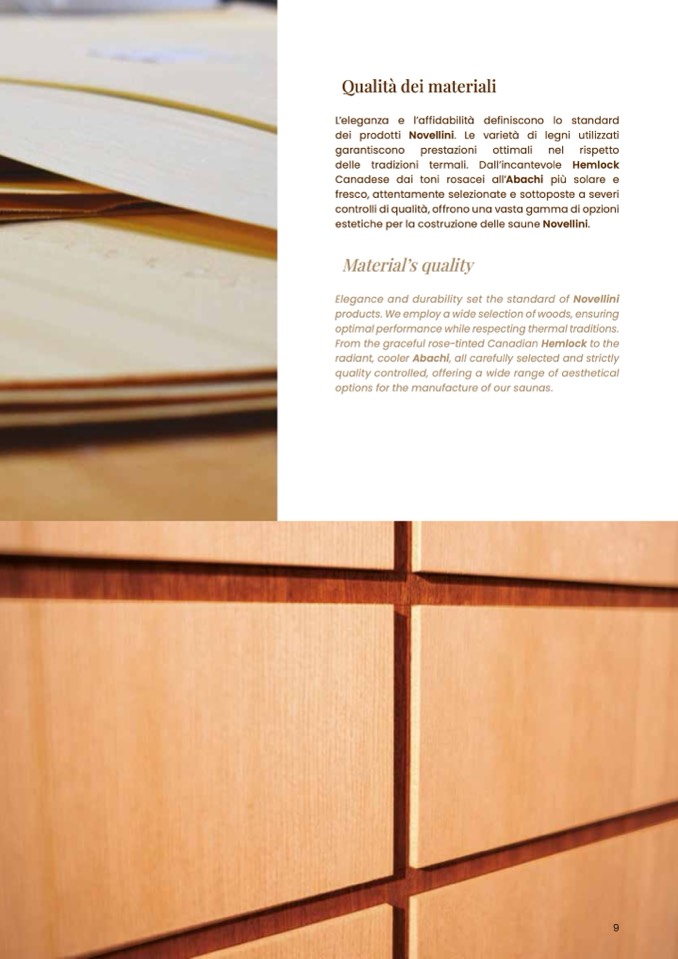 dei prodotti Novellini. Le varietà di legni utilizzati