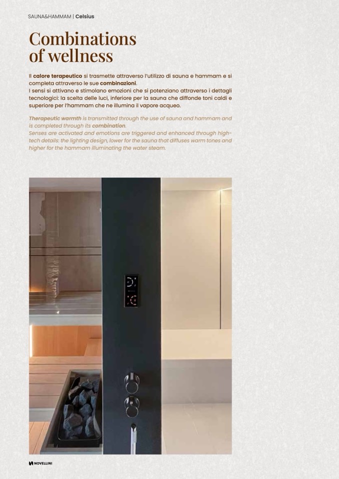 tecnologici: la scelta delle luci, inferiore per la sauna che diffonde toni caldi e