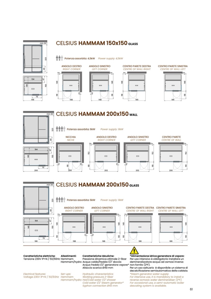 Tensione 230V 1P+N / 50/60Hz Hammam