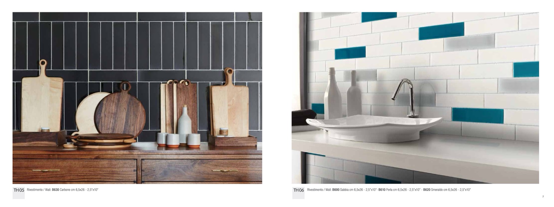 Rivestimento / Wall: B600 Sabbia cm 6,5x26 - 2,5”x10”- B610 Perla cm 6,5x26 - 2,5”x10” - B620 Smeraldo cm 6,5x26 - 2,5”x10”
