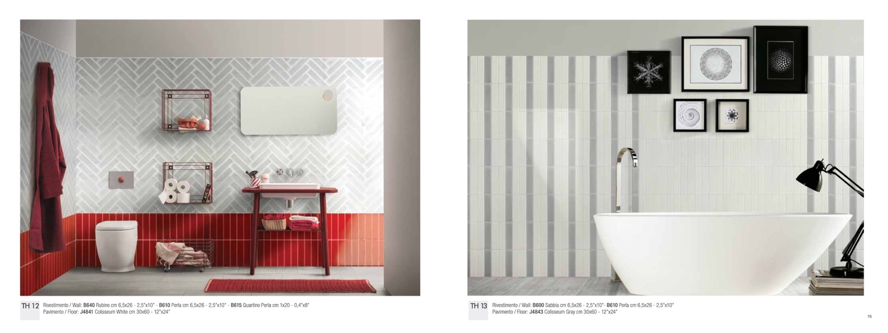 Rivestimento / Wall: B640 Rubino cm 6,5x26 - 2,5”x10” - B610 Perla cm 6,5x26 - 2,5”x10” - B615 Quartino Perla cm 1x20 - 0,4”x8”