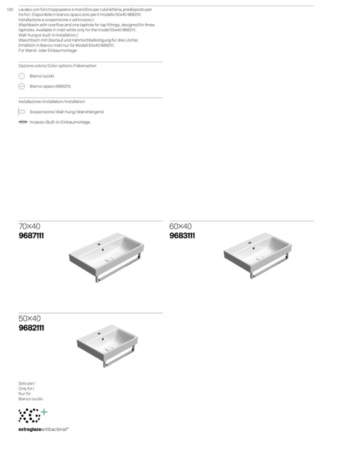 tre fori. Disponibile in bianco opaco solo per il modello 50x40 9682111.