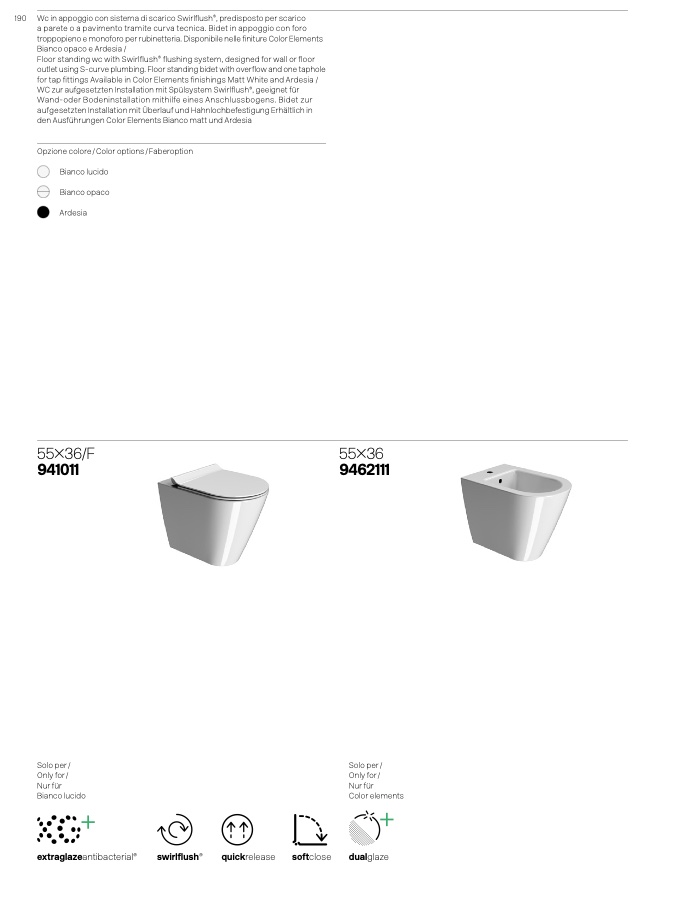 190 Wc in appoggio con sistema di scarico Swirlflush