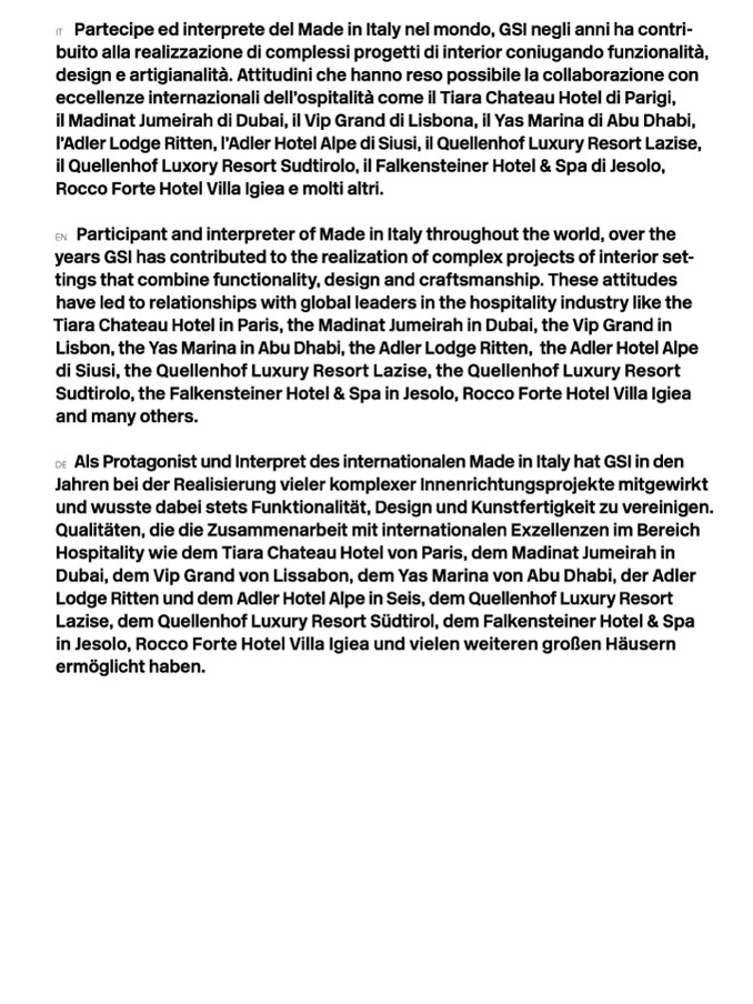 Als Protagonist und Interpret des internationalen Made in Italy hat GSI in den