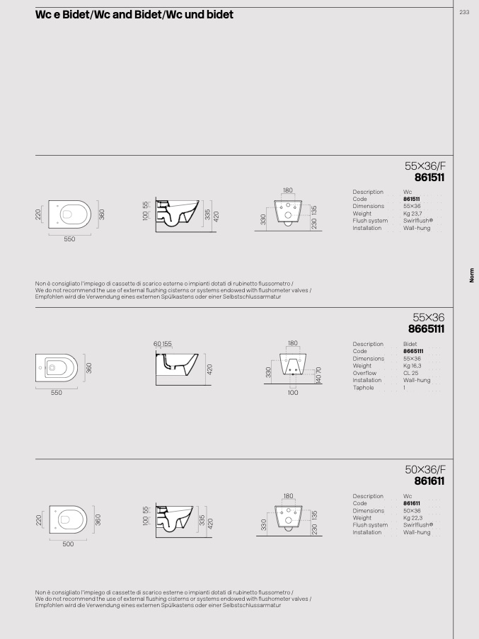 Non è consigliato l’impiego di cassette di scarico esterne o impianti dotati di rubinetto