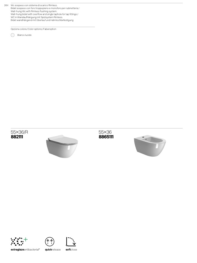 264 Wc sospeso con sistema di scarico Rimless.