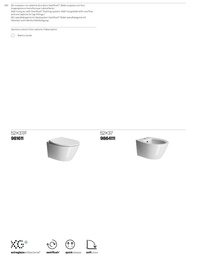 292 Wc sospeso con sistema di scarico Swirlflush