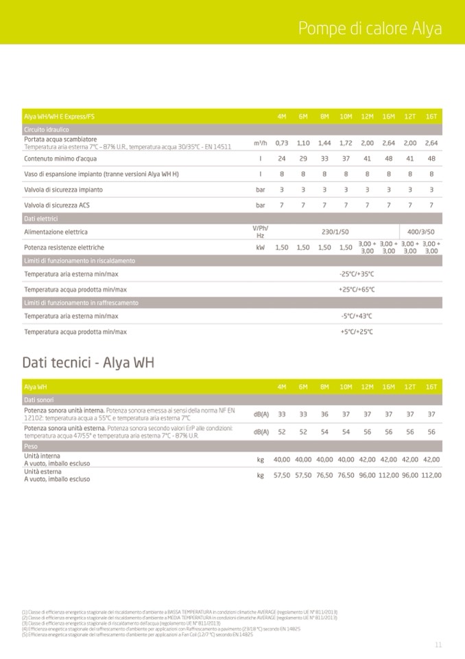 (4) Efficienza enegetica stagionale del raffrescamento d'ambiente per applicazioni con Raffrescamento a pavimento (23/18 °C) secondo EN 14825