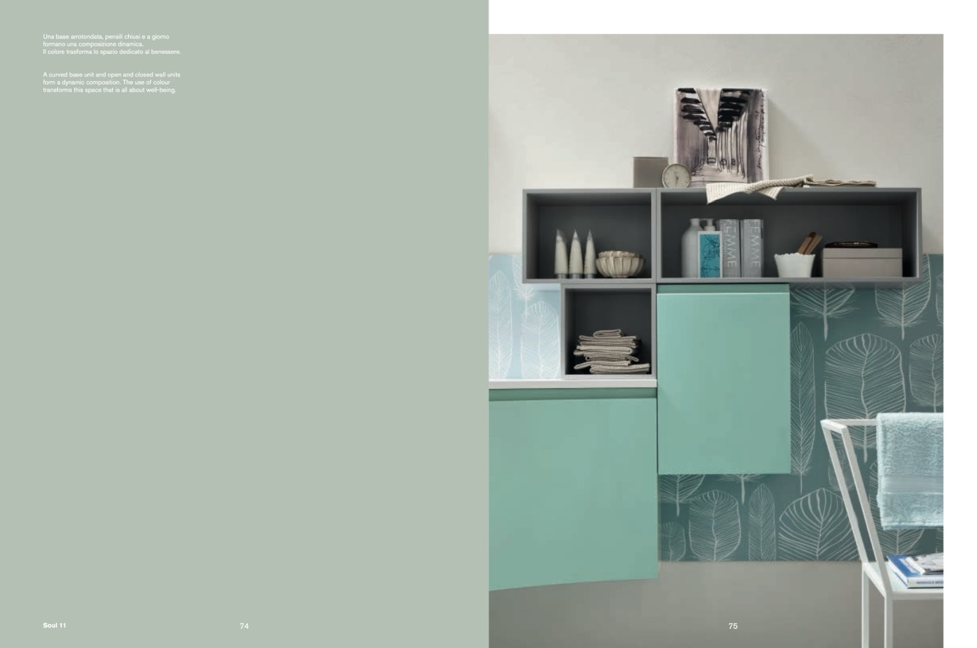 Una base arrotondata, pensili chiusi e a giorno