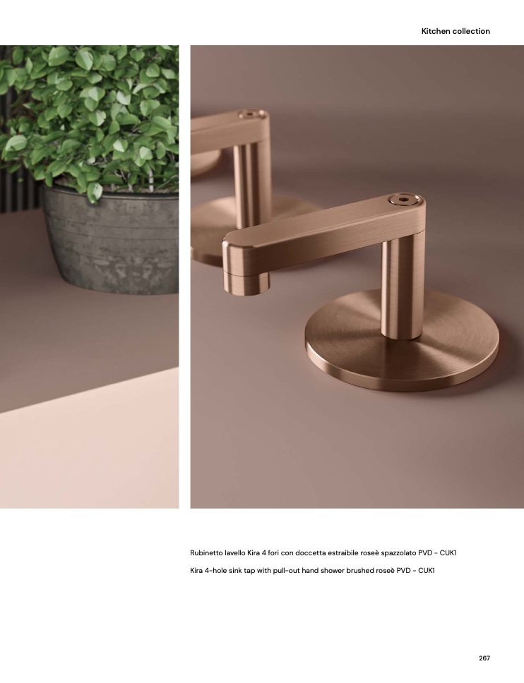 Rubinetto lavello Kira 4 fori con doccetta estraibile roseè spazzolato PVD - CUK1