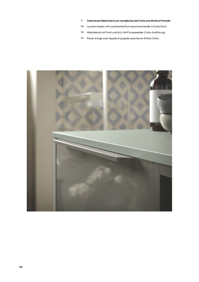 Cestone portabiancheria con maniglia laccata Creta coordinata al frontale
