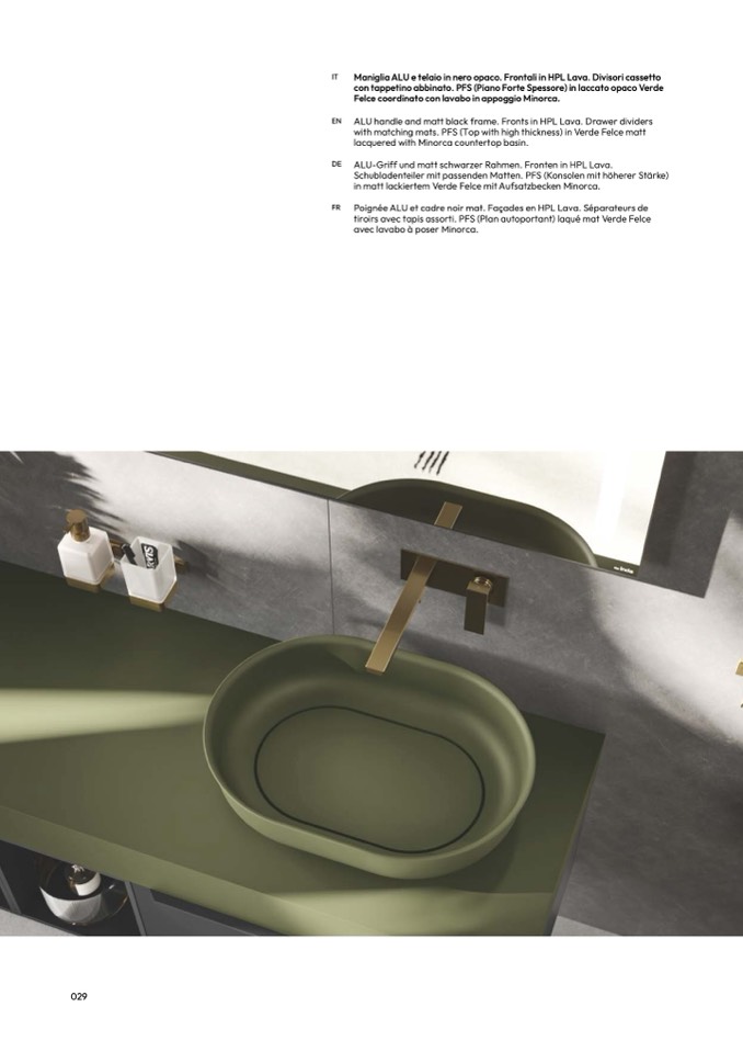 in matt lackiertem Verde Felce mit Aufsatzbecken Minorca.