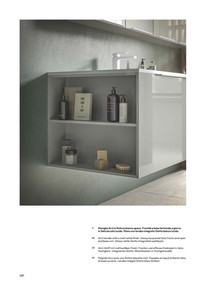 end base unit. Glossy white Giotto integrated washbasin