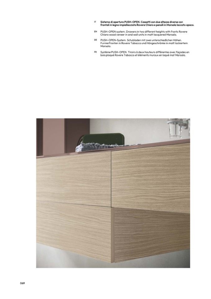 PUSH-OPEN system. Drawers in two different heights with fronts Rovere