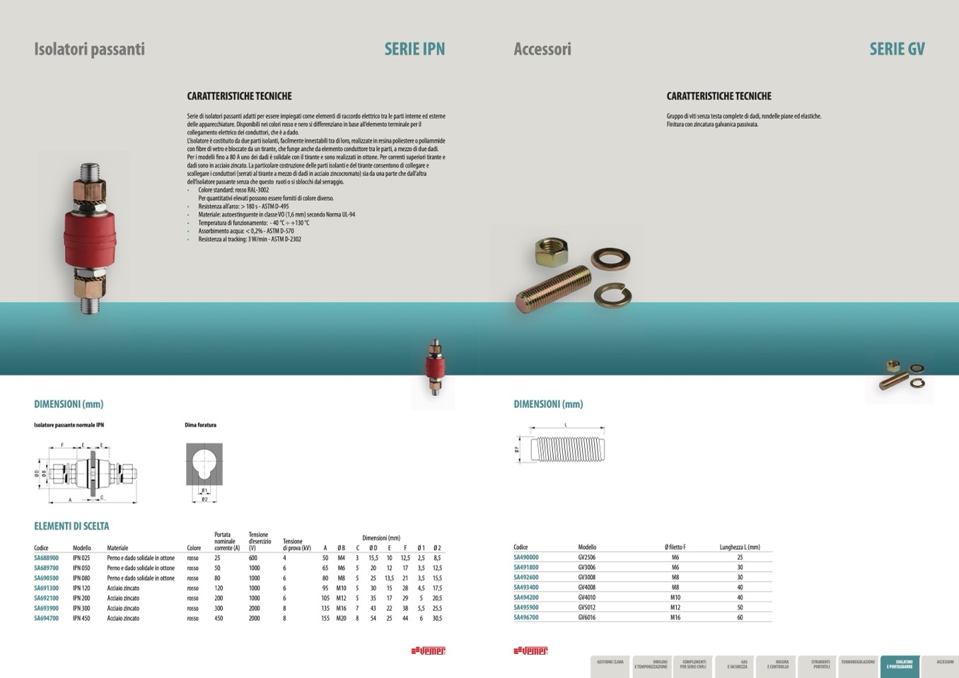 dadi sono in acciaio zincato. La particolare costruzione delle parti isolanti e del tirante consentono di collegare e
