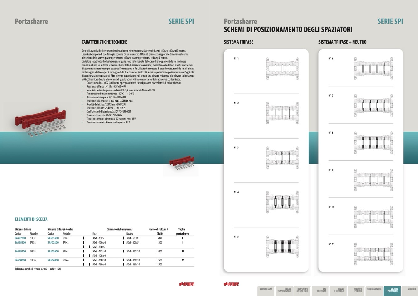 Serie di isolatori adatti per essere impiegati come elemento portasbarre nei sistemi trifase e trifase pi