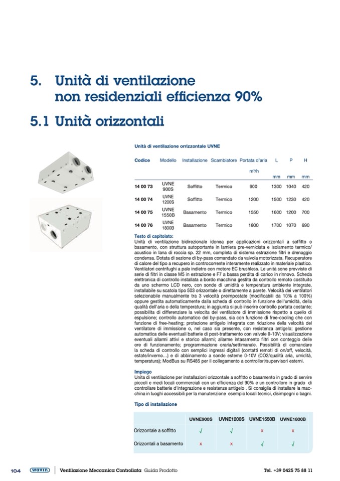 Unità di ventilazione orrizzontale UVNE