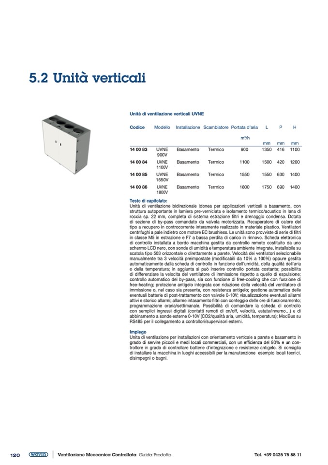 Unità di ventilazione verticali UVNE