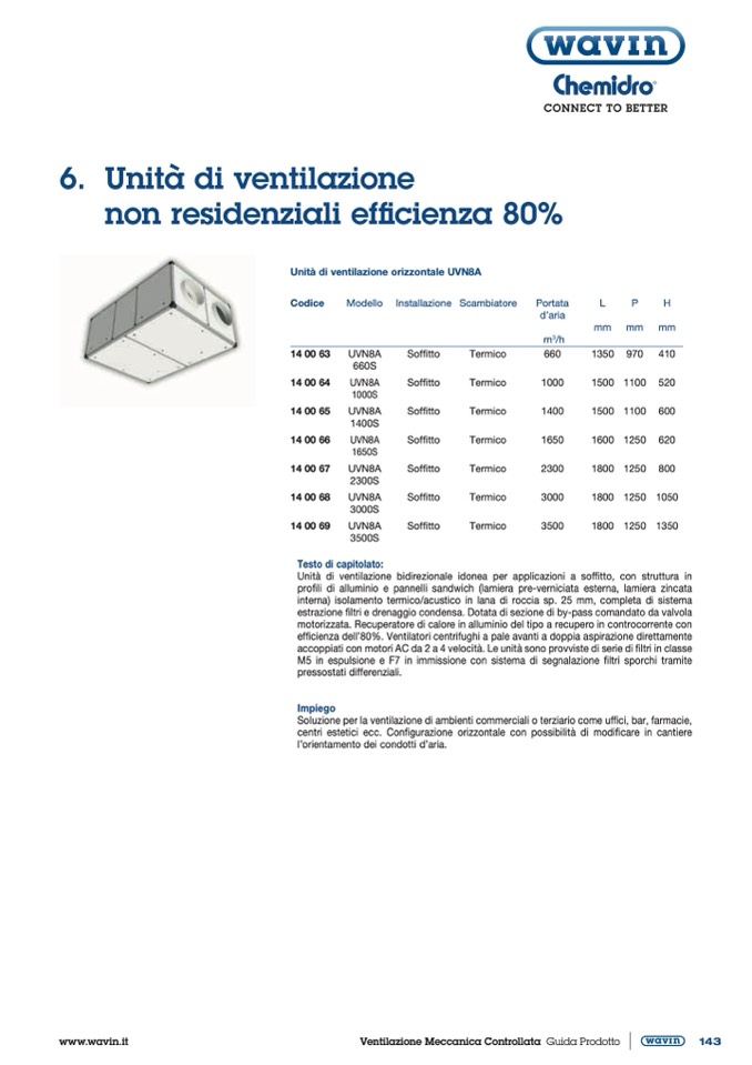 Unità di ventilazione orizzontale UVN8A