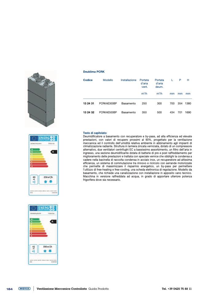 l’utilizzo di free-heating e free-cooling, una scheda elettronica di regolazione. Modello da