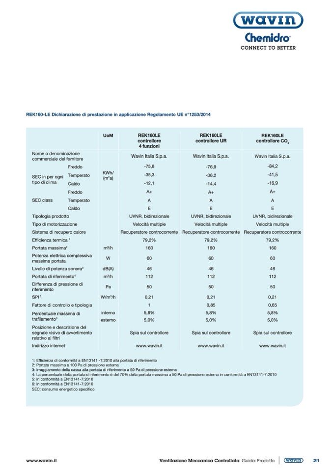 REK160-LE Dichiarazione di prestazione in applicazione Regolamento UE n°1253/2014