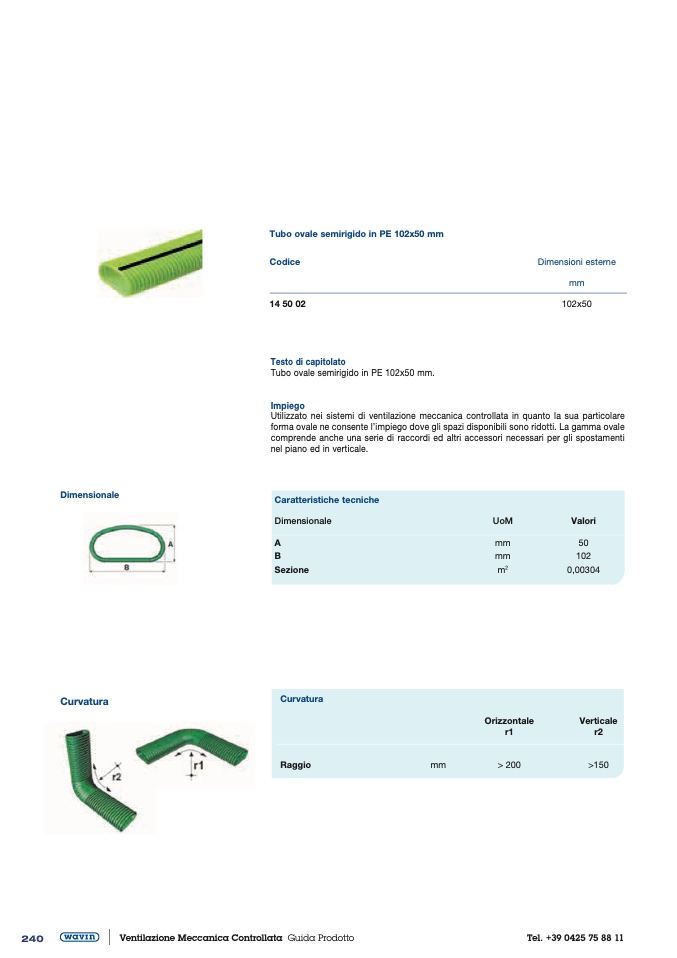 Tubo ovale semirigido in PE 102x50 mm.