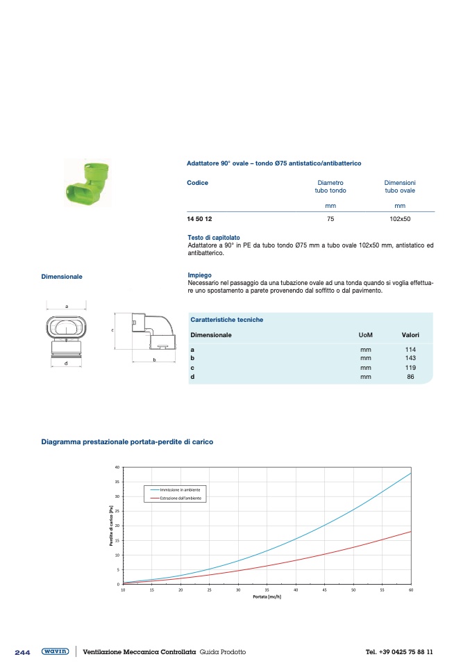 Adattatore 90° ovale – tondo Ø75 antistatico/antibatterico