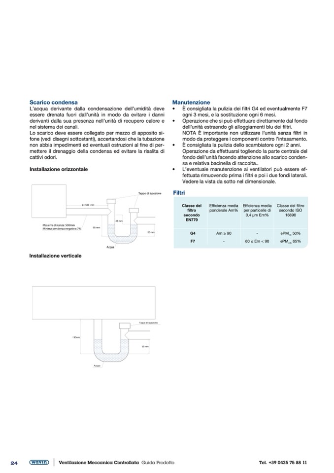 È consigliata la pulizia dei filtri G4 ed eventualmente F7