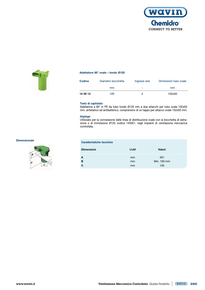 zione o di immissione Ø125 codice 145051, negli impianti di ventilazione meccanica