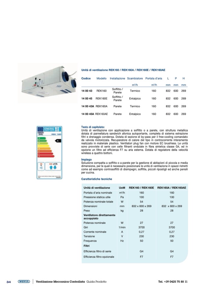Unità di ventilazione REK160 / REK160A / REK160E / REK160AE