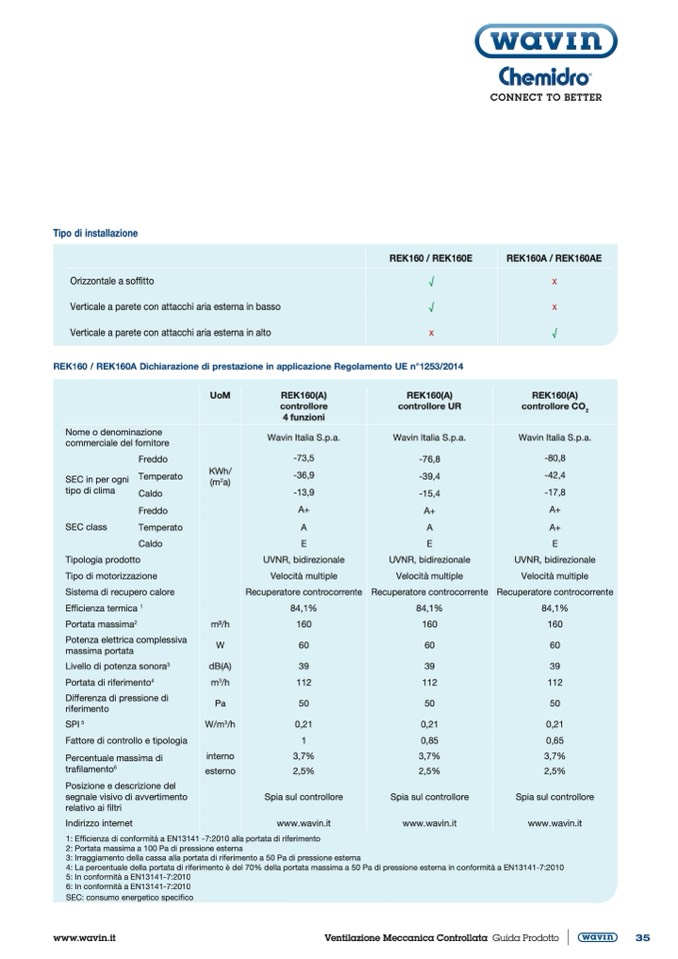 REK160 / REK160A Dichiarazione di prestazione in applicazione Regolamento UE n°1253/2014