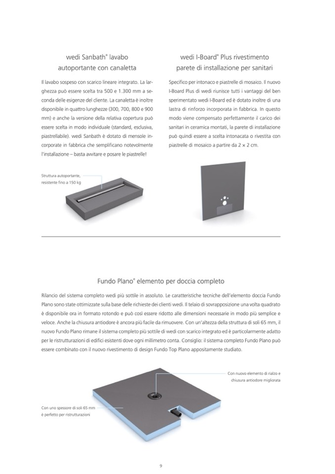 nuovo Fundo Plano rimane il sistema completo più sottile di wedi con scarico integrato ed è particolarmente adatto