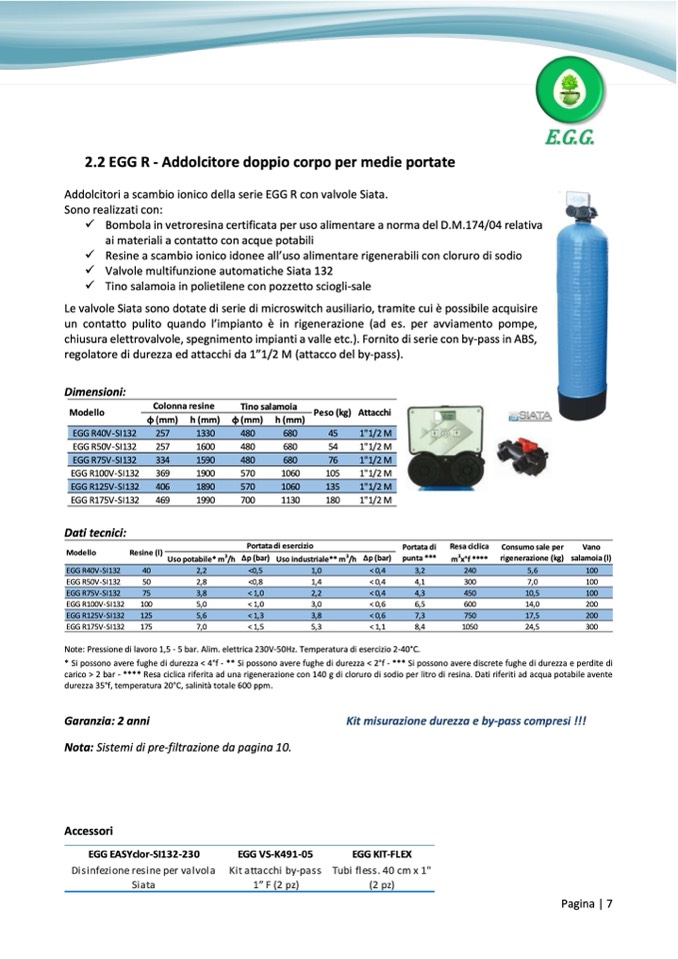 Addolcitori a scambio ionico della serie EGG R con valvole Siata.