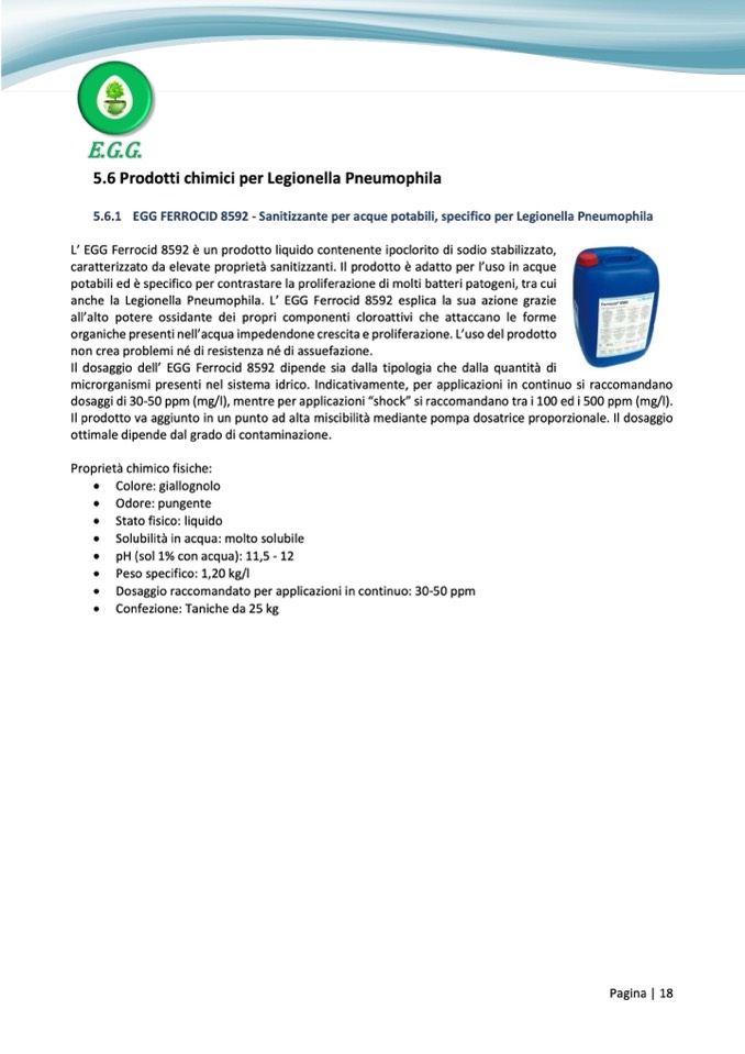 5.6.1 EGG FERROCID 8592 - Sanitizzante per acque potabili, specifico per Legionella Pneumophila