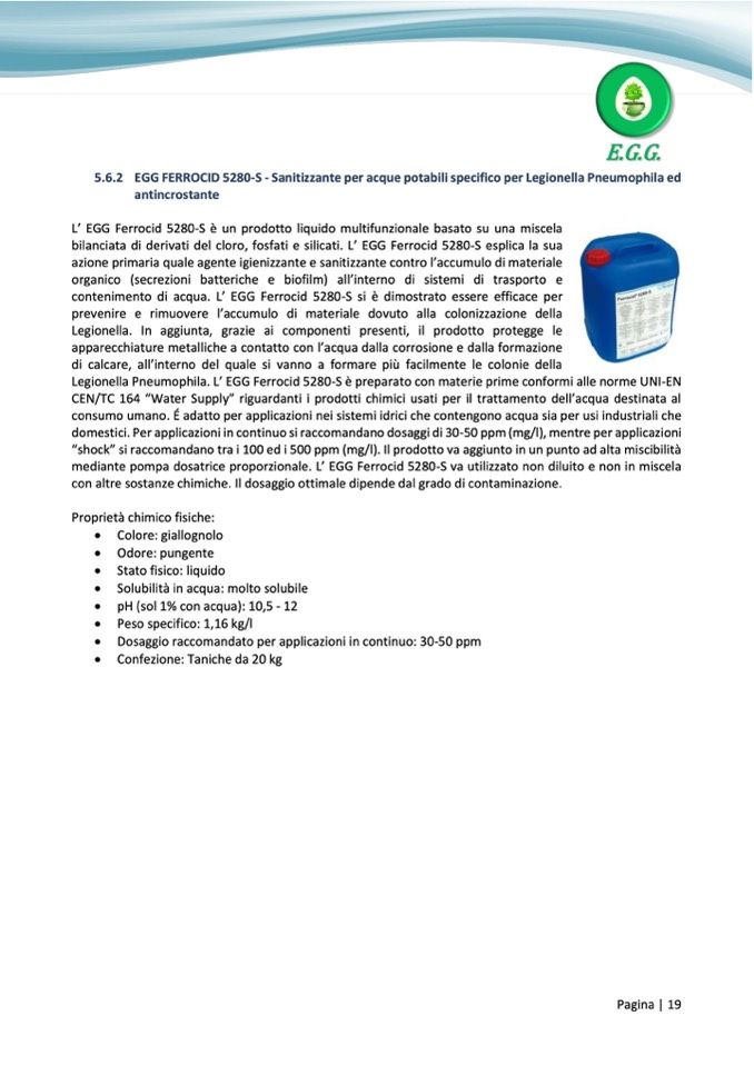 5.6.2 EGG FERROCID 5280-S - Sanitizzante per acque potabili specifico per Legionella Pneumophila ed