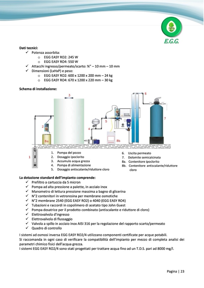 I sistemi EGG EASY RO2/4 sono stati progettati per trattare acqua fino ad un T.D.S. pari ad 8000 mg/l.