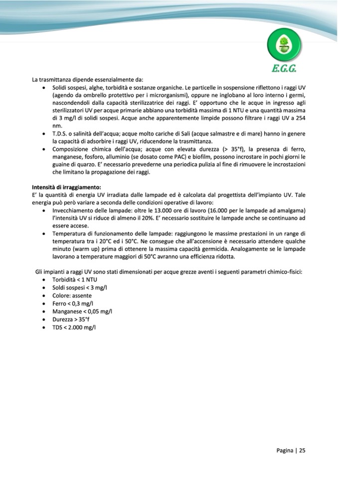 nascondendoli dalla capacità sterilizzatrice dei raggi. E’ opportuno che le acque in ingresso agli